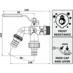SEPP-EIS Außenwandventil (Wasserhahn) DN 15-1/2“, 135-500 Mm