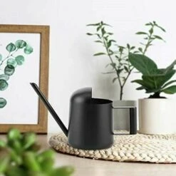 Mini-Gießkanne Aus Schwarzem Edelstahl, 300 Ml, Für Gartenpflanzen.