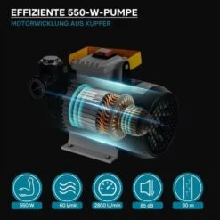 Gartenpumpe 2800l/h, 600W, Tragegriff & Wasserablassschraube, Max. Förderhöhe 35m, Rostfreier Stahl