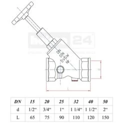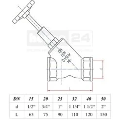 Schrägsitzventil, 1“ IG – DN25 – Steigende Spindel, Prüfstopfen, Rückflussverhinderer Und Entleerung