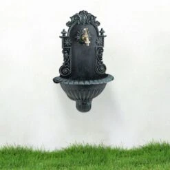 Wandbrunnen Mit Spritzschutz Aus Beton Mit Ziegeleffekt Modell Poker 70 Cm In Grauer Farbe