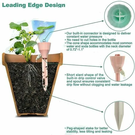 【Einfach zu bedienen】 Tröpfchenbewässerung in der Flasche, schnelle Installation, kein Drehen erforderlich, einfach hinstellen, Pflanzensprinkler, Wasser direkt zu den Pflanzenwurzeln leiten , geeignet für die meisten Pflanzen.Einfache Durchflussregelung bedeutet, dass Ihre Pflanzen die richtige Menge Wasser erhalten.