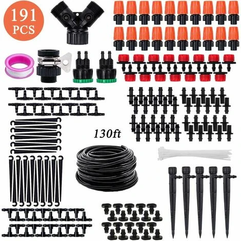 - 【191-teiliges Tropfbewässerungsset】- Unser Bewässerungssystem mit 40 m Schlauch, dieser Schlauch aus hochwertigem und wetterbeständigem ABS-Kunststoff.UV und Chemikalien können alle Ihre Pflanzen gleichzeitig bewässern. Sie können die Röhre je nach Bedarf in beliebig viele Nebenflüsse aufteilen. Dieses System erhöht effektiv den Wasserdruck und löst perfekt das Problem des Wassermangels der Pflanzen.