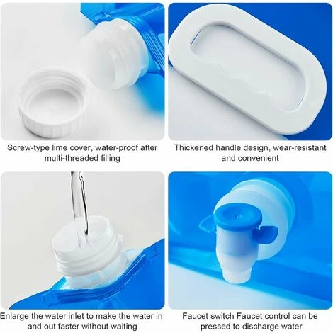 - Hergestellt aus geruchloser und lebensmittelechter Polyethylenfolie, wiederverwendbar und nachfüllbar, kann es Ihren Wasserspeicherbedarf bei verschiedenen Gelegenheiten decken.