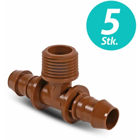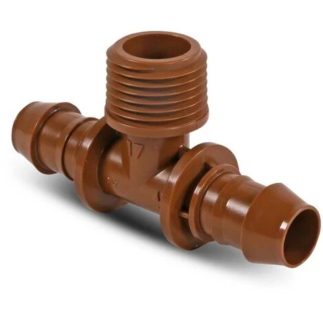 T-Stück mit Schlauchtülle mit Außengewinde 17mm x 1/2“ x 17mm für XF Dripline und 17mm Tropfleitungen.
