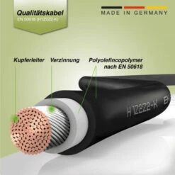 Dieses Solarkabel ist TÜV zertifiziert, Hergestellt in Deutschland und die Steckermontage erfolgt von Fachkräften in unserem Hause.