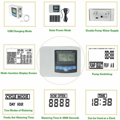 Flexibler -Ct-Computer ermöglicht es Ihnen, die erforderliche Bewässerungshäufigkeit und -dauer einzustellen. Bewässerungszeit: 999 Sekunden, Häufigkeit kann in Sekunden, Minuten, Stunden oder Tagen eingestellt werden. Das Arbeiten mit einem leisen Motor ist leiser. Der Sprinkler-Timer besteht aus ABS-Kunststoff, Peek und Silikontechnik. Sie ist verschleißfest, hochtemperaturbeständig, korrosionsbeständig, Sonnenschutz, alterungsbeständig, strapazierfähig und langlebig. Einfache Handhabung – die Bewässerungsuhr mit Drehgelenk lässt sich schnell und ohne Werkzeug montieren . Eingebaute intelligente Chips, keine Stromausfalldaten verloren. Starke Regenfestigkeit, geringer Stromverbrauch, lange Akkulaufzeit, Gangreserveunterstützung. Sehr gut geeignet für Gewässer, Rasenflächen, Gärten, Blumentöpfe, Körbe, Terrassenbewässerung, Dachgarten, Bewässerung etc. 10m 10m Bewässerungswasserspiel, Materialverbesserung, Sonnenschutz und Einfrieren, Gartenbewässerungswasserleitungen, Alterungsbeständigkeit, nicht aushärtend und farblich unverändert. pünktlich. Gießpunkt nur an der Stelle, die Sie benötigen, es wird weniger Wasser verbraucht als bei herkömmlichen Sprühköpfen und Tröpfchen. Energieeinsparung und Umweltschutz, Akkus sind voll aufgeladen. Regenschutz, geringer Energieverbrauch und mehr Energie. Digitale Bewässerungsuhr: Die intelligente digitale Steuerung hilft nicht nur bei der effizienten Nutzung des Gießwassers, sondern verbessert auch die Effizienz der automatischen Bewässerung. Darüber hinaus kann es Ihnen helfen, Arbeitskosten zu sparen und über hervorragende Batterieanzeigen zu verfügen. Das LCD-Display zeigt den Bewässerungsstatus und Standardzeit/-datum an.