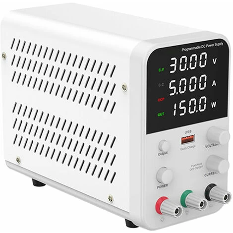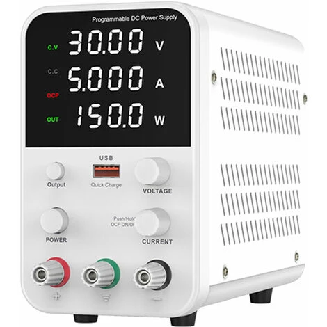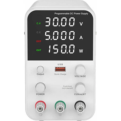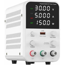 Einstellbare Spannung & Strom, LED-Anzeige – Das Code-Potentiometer stellt die Spannung und den Strom ein, und der eingestellte Wert kann im Voraus angezeigt werden. Konstantspannung und Konstantstrom schalten automatisch um. 4-stellige digitale Röhre, LED-Anzeige für Spannung, Strom und Leistung, hohe Präzision.
