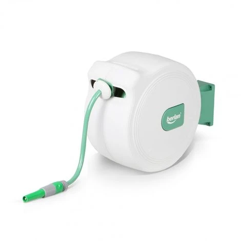 Praktischer automatischer Wasserschlauchaufroller mit 1/2“ Anschluss zum mobilen Einsatz oder fester Installation bei einer Schlauchlänge von bis zu 30 m. Verdrehte und unordentlich herumliegende Gartenschläuche gehören damit der Vergangenheit an.