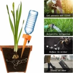 [einfache Bedienung] Der Sprinkler kann ohne lange Installation installiert werden, einfach das Tropfwasser drücken und in den Boden stecken. Das automatische Bewässerungssystem kann mit den meisten Flaschen umgehen.