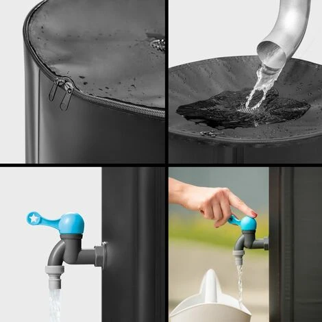 Zusammenklappbarer Regenwassertank zum Sammeln von Regenwasser für die spätere Verwendung wie die Bewässerung von Gärten. Es ist leicht und extrem einfach zu installieren, zu transportieren und zu lagern. Perfekt für kleine und mittlere Gärten und Freizeitterrassen. Es kann Wasser mit einer Kapazität von bis zu 250 Litern füllen.