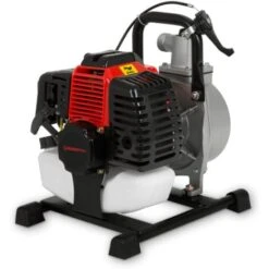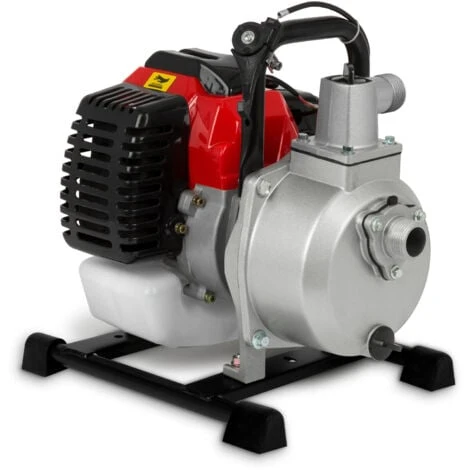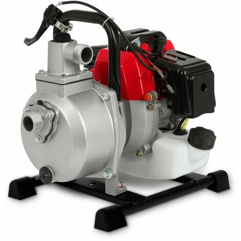 - QUALITÄT: Die Pumpe wird mit einem 2 PS starkem 2-Takt Benzinmotor betrieben und lässt sich mit einem Tankinhalt von 0,7 L bis zu 4 Stunden betreiben. Die Fördermenge lässt sich stufenlos über den Gashebel regulieren. Start erfolgt über Seilzug