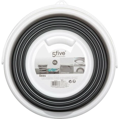 Länge : 34.5 cm – Breite : 34.5 cm – Höhe : 5 cm – Gewitch : 0.54 kg – Faltbarer eimer 10l weiß grau – 5 five simply smart