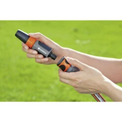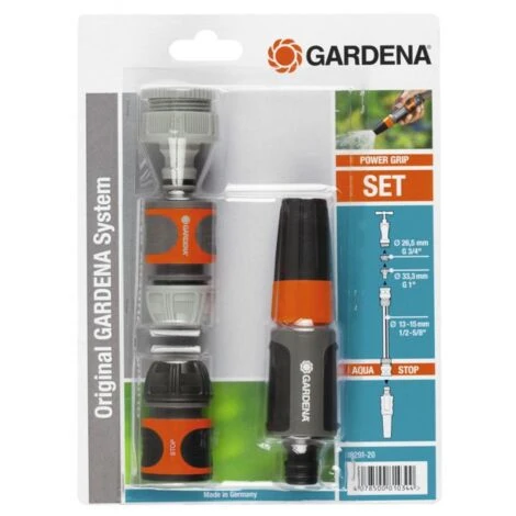 GARDENA Grundausstattung – Komplettset für Systemeinsteiger. Vielseitig verwendbar für ein großes Anschlussgeräteprogramm. Für 13 mm (1/2“)- und 15 mm (5/8“)-Schläuche und Wasserhahn mit 26.5 mm (G 3/4)- und 33.3 mm (G 1)-Gewinde. Inhalt: 1 x 18202/5305. 18215. 18213. 18300.