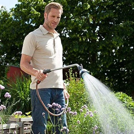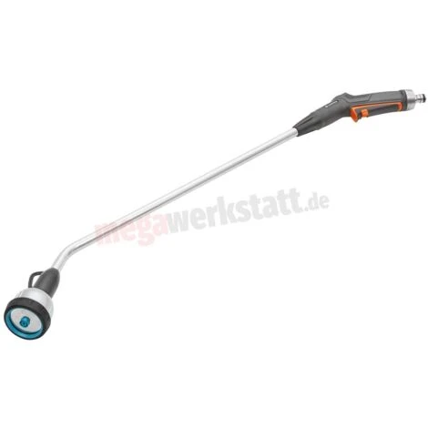 Der 90 cm lange GARDENA Premium Gießstab ist für die Bewässerung von größeren Pflanzflächen oder -gefäßen und die Reinigung von entfernten oder schwer zugänglichen Bereichen geeignet. Dabei kann man zwischen drei verschiedenen Sprühbildern wählen – Sprühstrahl. Brausestrahl und Stechstrahl. Brausekopf und Anschlussstück am Premium Gießstab sind mit Metallelementen versehen und extrem widerstandsfähig. Durch Weichkunststoffelemente wird der Premium Gießstab besonders griffig. Die ergonomische Auslösetaste und die stufenlose Regulierung der Wassermenge mit nur einem Finger machen die Handhabung besonders angenehm. Für die dauerhafte Bewässerung kann die Auslösetaste einfach festgestellt werden. Dank integriertem Frostschutz nimmt der Gießstab auch bei Frost keinen Schaden. Mit Hilfe der Aufhängemöglichkeit lässt er sich nach dem Gebrauch einfach und schnell verstauen. Made in Germany.