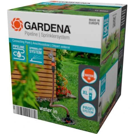 Mit der Anschlussdose von GARDENA wird eine Verbindung vom Wasserhahn zu den unterirdisch verlegten Rohren der GARDENA Pipeline sowie des GARDENA Sprinklersystems hergestellt. Damit bildet die Anschlussdose den Startpunkt der Systeme. Sie ist mit einem Profi-System Hahnstück ausgestattet, das einen hohen Wasserdurchfluss ermöglicht und dadurch ideal zur Wassereinspeisung in das System ist. Sobald die Verbindung steht, zeichnet sie sich durch ihre hohe Funktionssicherheit aus. Sehr nützlich ist ebenfalls der versenkbare Kugeldeckel, der beim Öffnen im Inneren der Anschlussdose verschwindet und daher zum Beispiel beim Rasenmähen kein Hindernis darstellt. Durch das enthaltene Schmutzsieb ist die Anschlussdose geschützt vor Schmutz, Gras oder Laub. Es lässt sich herausnehmen und unter fließendem Wasser leicht ausspülen. Außerdem besteht die in Europa hergestellte Anschlussdose aus hochwertigen Materialien, wodurch sie robust ist
