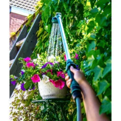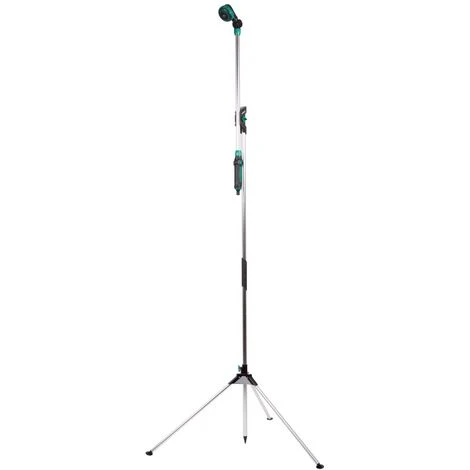 Der Duschkopf ist um 180° verstellbar und verfügt über drei verschiedene Strahlformen, so dass Sie nicht nur sehr angenehm duschen, sondern z. B. auch Ihre Pflanzen gießen können. Die abnehmbare Brauselanze/der Duschkopf ist mit einer Stange ausgestattet, so dass auch größere Höhen leicht erreicht werden können. Man denke zum Beispiel an das Gießen von hoch hängenden Pflanzen oder an das Waschen eines Wohnwagens, Busses oder Wohnmobils. Mittels eines einfachen Drehknopfes lässt sich die gewünschte Höhe zwischen 149 und 190 cm leicht einstellen.