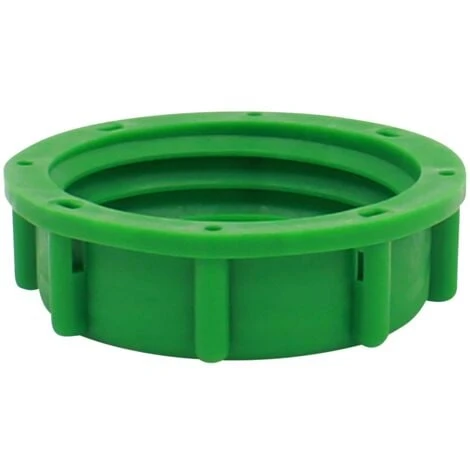 IBC Ersatzschraubkappe 2 Zoll. Diese Ersatzschraubkappe für die IBC Auslaufarmatur besitzt die Größe DN50. Dies entspricht genau 2 Zoll. Das Gewinde-Anschlussmaß zum Tank ist S60x6. Das stabile Grobgewinde sorgt für einen absolut soliden Halt und eine lange Lebensdauer. Die Kappe aus PE-Kunststoff lässt sich dank der Schraubhilfen am äußeren Rand sogar mit nassen Händen fest anziehen. Anschluss zum Tank S60x6 (DN50/2 Zoll) Innengewinde / Grob. Ihr gemessener Durchmesser 55 – 62 mm.