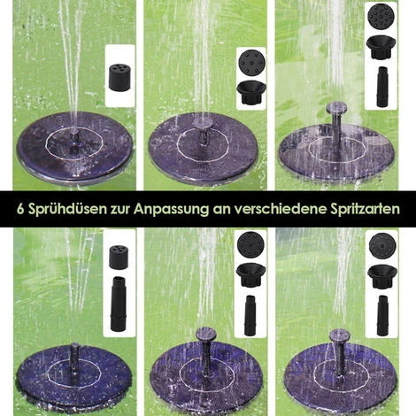 zu erzielen. [Einfach zu installieren und zu verwenden] Ersetzen Sie einfach den bevorzugten Sprühkopf. Wenn Sie den Solarbrunnen verwenden, setzen Sie die Pumpe ins Wasser, um die Luft aus der Pumpe zu entleeren. Wenn das Sonnenlicht ausreicht, startet die Pumpe