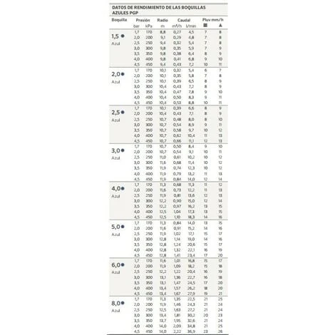 Düsenanordnungen: von # 1 bis # 12 rot, blau 1,5 bis 8,0, von # 4 bis # 10 LA LA grau