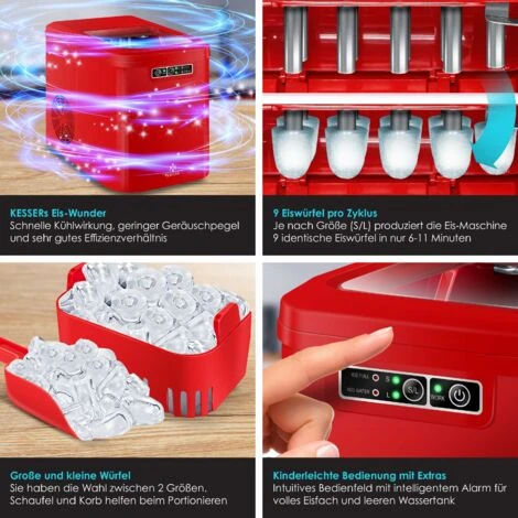 KESSER Eiswürfelmaschine, 2,2 Liter Wassertank für zwei Eiswürfel-Größen, schnelle und ruhige Produktionszeit, integrierter Energiesparmodus