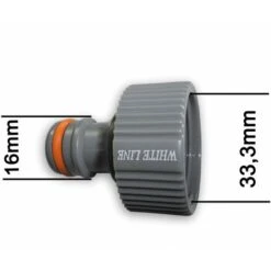 Der Hahnverbinder ermöglicht den sicheren und schnellen Anschluss eines Gartenschlauchs an einen Wasserhahn. Das Hahnstück ermöglicht eine einfache und angenehme Handhabung dank der speziellen geriffelten Form. Der Hahnverbinder ist für Wasserhähne mit 33,3mm (G 1)-Gewinde geeignet.