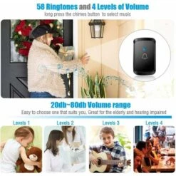 - 【58 schöne Melodien und einstellbare Lautstärke】 Die kabellose Türklingel bietet eine große Auswahl an 58 Glockenspielen für Ihren persönlichen Geschmack! 4 Lautstärkepegel von 20 dB bis 80 dB, um Ihren Anforderungen für verschiedene Anlässe gerecht zu werden. Blinkt mit akustischen Warnanzeigen, die für Hörgeschädigte leicht erkennbar sind. </ Li>