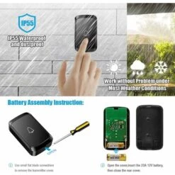 - 【Wasserdicht und einfach zu installieren】 Der drahtlose Türklingelsender ist wasserdicht nach IP55 und kann im Freien bei Regen oder Schnee verwendet werden. Die Installation der Türklingel ist sehr einfach. Für eine schnelle Installation benötigen Sie nur doppelseitiges Klebeband oder Schrauben. </ Li>