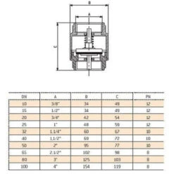 - Messing Rückschlagventil – Öffnungsdruck: 0,024 bar – Nenndruck: PN 12