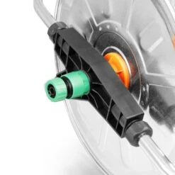 Schwenkbare, verzinkte Schlauchtrommel zur Wandmontage für 1/2″ Schläuche mit einer Länge von bis zu 50 Metern.