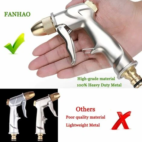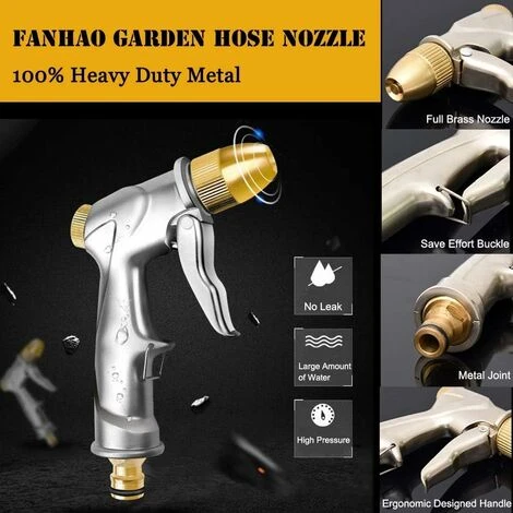 - [Premium-Material] – Aus 100 % Metall und Messingkopf. Ganzkörperdüse aus Messing und Pistolenkörper aus Zinklegierung. Unser Gartenschlauchdüsen-Sprühpistolenprodukt ist viel stärker und stärker als Kunststoff und langlebig.Diese Schlauchdüse ist ideal für die Reinigung Ihres Autos, Gehweges, Gartens, Dachrinnen, Decks und mehr.