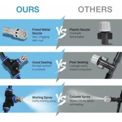 - 【Verbesserte Qualität】: Aktualisierte Sprühsystemdüsen bestehen aus Präzisionsmessing, sind leicht anzuschließen, auslaufsicher und selbstdichtend, T-Verbindung, hochwertiger, UV-beständiger, flexibler Schlauch, beständig gegen Vergilbung, Hydrolyse und Mikroben Verschlechterung und mehr.