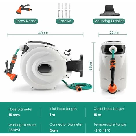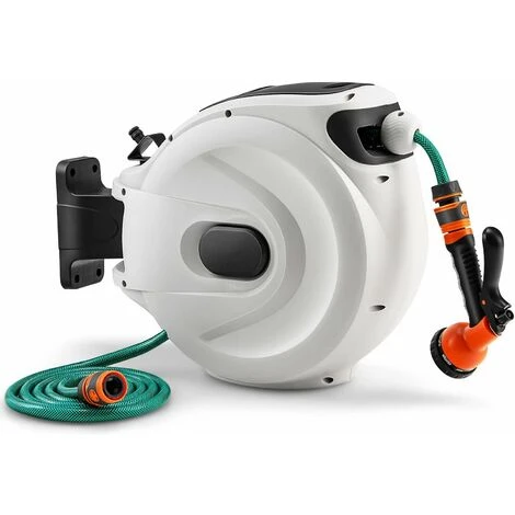 - Reichlich Zubehör & Einfach zum Bedienen: Unsere Wasserschlauchtrommel wird mit 1 Düse, 1 Halterung, 1 Anleitung und Schrauben geliefert, damit Sie sie einfach montieren und benutzen können. Sie können die Wasserschlauchtrommel einfach an der Wand befestigen, oder nehmen Sie es überall mit dem Griff mit.