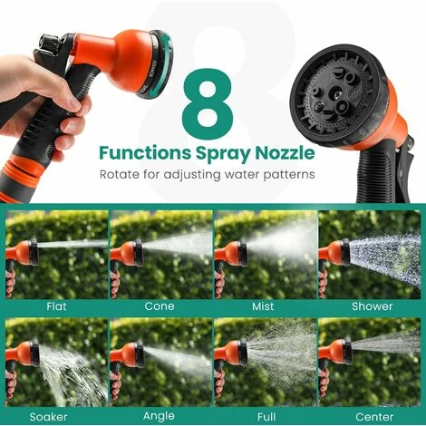- Mehrere Sprühfunktionen: Diese Gartenschlauchtrommel verfügt über 8 Sprühfunktionen, aus denen Sie für mehrere Zwecke auswählen können. Sie können damit Ihr Auto waschen, Fenster putzen, Blumen gießen oder Haustiere baden usw.