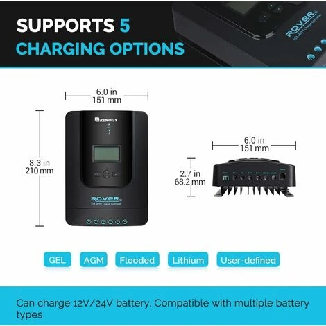 - Mit einem Renogy 20A MPPT-Laderegler; Sie können Ihr System auf maximal 200 W (12 Volt) oder 400 W (24 Volt) erweitern