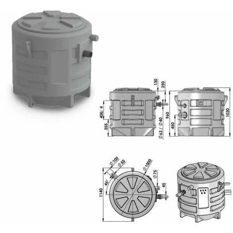 Abmessungen (Durchmesser/Höhe): 1140 mm x 1030 mm