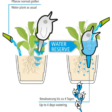 - Je nach Standort und Durst der Pflanze sichert die Größe S für bis zu 4 Tage die Wasserversorgnung.