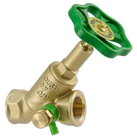 SCHLÖSSER Schrägsitzventil 1 IG – DN25 – DIN-DVGW-geprüft – Schallschutz-Zulassung Klasse 1 – mit steigender Spindel, Fettkammeroberteil und Entleerung