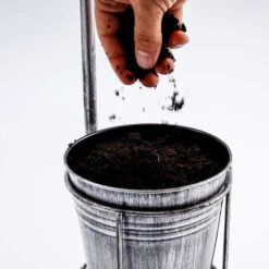 Der warmweiße Lichtregen des Wasserhahns fällt hinab auf einen Pflanztopf, der, wie das Rohr des Hahns selbst, von einem runden, dreifüßigem Gestell aus gebogenen Stahlstreben gehalten wird. Sie können den Pflanztopf ganz nach Ihren Vorstellungen mit Blumen oder Kräutern begrünen und somit selbst entscheiden, welche Pflanze in den Genuss der nächtlichen Lichtdusche kommen und zum romantischen Highlight in Ihrem Garten werden darf.