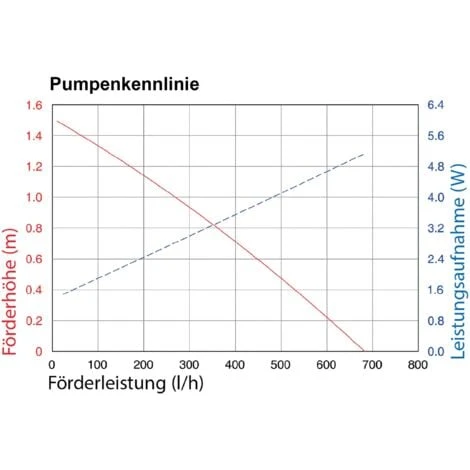 - Förderleistung: Max. 650 l/h (Kennlinie siehe Bilder)