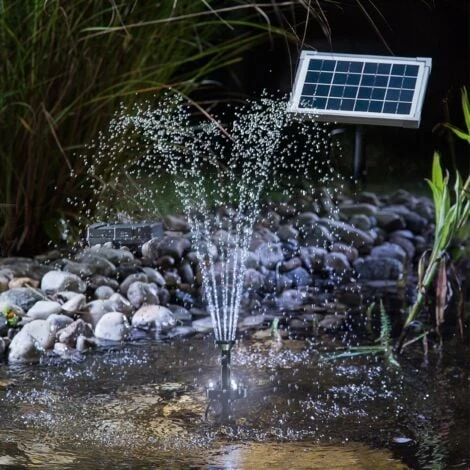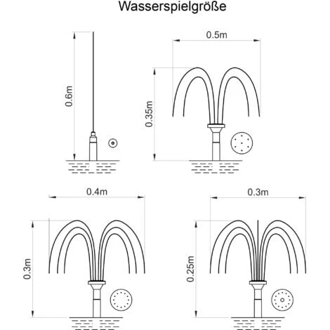 Die Sprinklerpumpe erreicht eine Förderhöhe von bis zu 50 cm und eine Fördermenge von maximal 160 l pro Stunde. Ein Drehregler ermöglicht es, die Pumpleistung individuell anzupassen. Die einzelnen Steigrohr-Segmente können Sie je nach Wassertiefe kombinieren – und dank der austauschbaren Sprinklerdüsen stehen gleich vier unterschiedliche Wasserfontänen zur Auswahl.