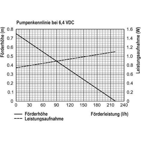 - Förderleistung: Max. 160 l/h (Kennlinie siehe Bilder)