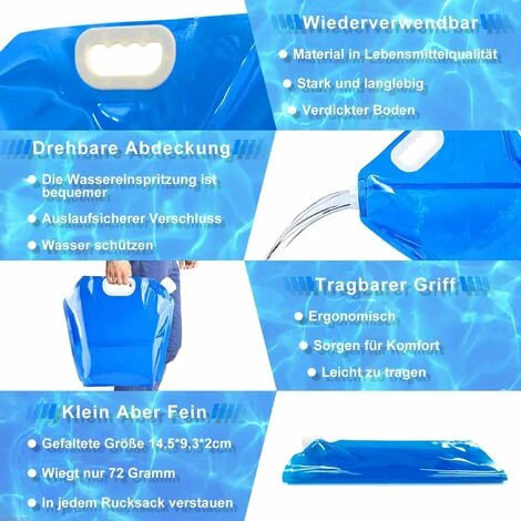 FALTBAR & TRAGBAR: Hergestellt aus geruchloser Polyethylenfolie in Lebensmittelqualität, ist es sicher, umweltfreundlich und wiederverwendbar und eignet sich perfekt für Camping, Wandern, Bergsteigen, Reisen, Outdoor- und Langstreckenautofahrten.Der Wasserkanister Faltbar kann in Schubladen, Rucksäcken, Koffern verstaut werden und ist sehr bequem zu tragen.