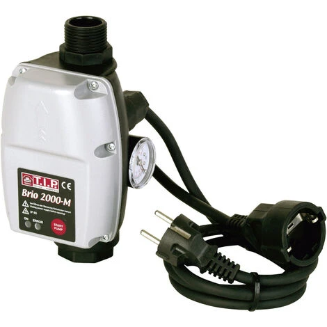 Das Brio 2000-M ermöglicht es, jede Art von Druckpumpe mit mehr als 1,5 bar durch einfache Installation zu automatisieren. Schützt vor Schäden durch Trockenlauf. Die Pumpe schaltet automatisch bei Erreichen des Minimaldrucks ein. Nach dem Schliessen der Verbraucher erfolgt eine leistungsabhängige Automatikabschaltung. Elektronisches Steuerungssystem für Tauchdruck-, Tiefbrunnen-, Zisternen- und Gartenpumpen. Netzanschluss mittels Schutzkontaktstecker und -kupplung. Druckanzeige durch eingebauten Manometer
