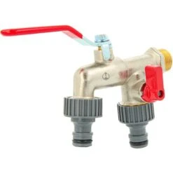 tecuro Doppel-Kugelauslaufventil mit zusätzlichem Abgang, einzeln absperrbar