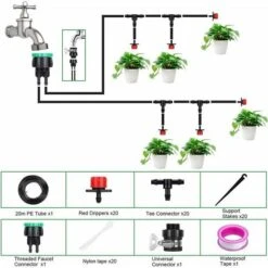 Produktbeschreibung:Bequem und praktisch – die Tropfbewässerung kann direkt an Ihren Wasserhahn (Waschmaschinensteckdose oder Kunststoffschlauch) angeschlossen oder mit einem Adapter für die Tropfbewässerung genutzt werden. Automatische Bewässerung. Stellen Sie die Tropfbewässerung ein, indem Sie die rote Kappe am Sprinklerkopf auf die gewünschte Wassermenge drehen.
