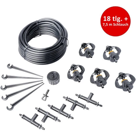 - ✅ALLES DABEI: Das 18-teilige Set ergibt ein vollständiges Bewässerungssystem! Enthalten sind 7,5 m Schlauch, 5 Sprengerköpfe, 5 Verbinder, 5 Erdspieße, 1 Stopper und 1 Adapter.