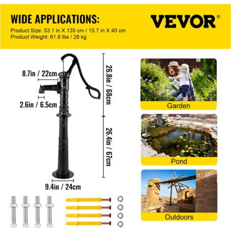 - 【EINFACHE INSTALLATION】- Die Schwengelpumpe ist einfach zu montieren und zu demontieren. Im Lieferumfang sind Schrauben für die Halterung enthalten. Sie benötigen nur einen Schraubendreher, um die Installation in 2-3 Minuten abzuschließen.