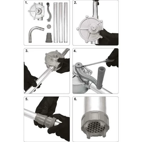 Details Passend für alle handelsüblichen Fässer, Kanister, Behälter | Material: Aluminium | Maße: Durch 3-teiliges Stecksystem variabel anpassbare Länge bis ca. 100 cm, Durchmesser Steigrohr: ca. 32mm | Förderleistung: 20 Liter / min | incl. Fassverschraubung