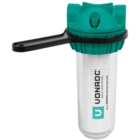 Dieser VONROC-Vorfilter eignet sich für die Vorfilterung von Wasser (auf der Saugseite der Pumpe) u.a. in Kombination mit Bewässerungspumpen und Hydrophorsets. Durch den Einsatz dieses Nachfilters schützen Sie Ihre Pumpe, Gartenspritze(n) und Haushaltsgeräte vor Sand und Schmutz, indem Sie den Filter zwischen Pumpe und Saugschlauch anbringen.